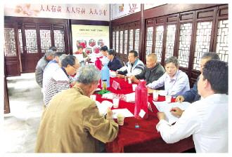 图为溧阳八字桥村“百姓议事堂”的理事们就村广场改造事宜进行议事讨论。 朱优惠 摄