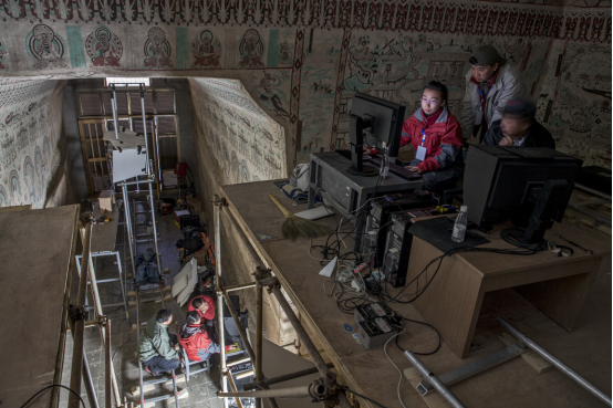 莫高窟第55窟数字化信息采集现场。敦煌研究院供图,孙志军/摄