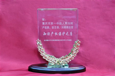 近三年来,重庆一中院院庭长带头审结包括涉腾讯、华为、加多宝等知名企业在内的知识产权案件1150件。2016年,该院院长卢祖新担任审判长审结“和美家”商标侵权案后,当事人专程来院递交感谢信,并赠送“知识产权保护之盾”铭牌:“法院的判决展示出很高的审判水平,有利于推动中美两国间商务合作关系的开展。”