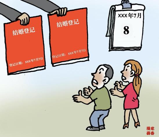 刘四位与张丽芳于七月七日去民政部门办理完毕结婚登记;但因民政系统故障,导致七月八日才能拿到结婚证。该如何确立这对夫妻的婚姻关系日期?