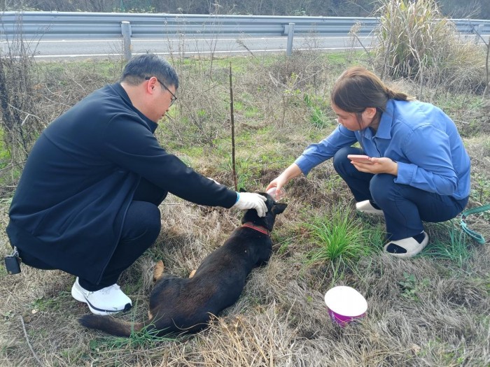 幸运的是,这一幕被正在巡逻的华常高速(衡阳分公司)白鹤铺管理所路产队及时发现。队员们迅速采取行动,及时梳理交通,路政队员们在确保自身安全的前提下,果断采取措施,成功将小狗救回并送往宠物机构进行救治,成功消除了这一安全隐患。