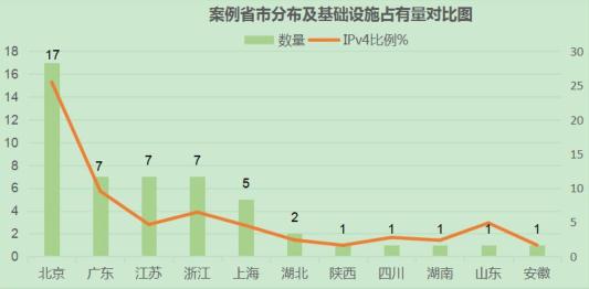 东部地区是我国互联网产业较为发达的区域,在产业繁荣发展的同时,也意味着一些违反产业秩序的乱象会伴随出现。从数据来看,东部地区聚集了绝大多数的案例,其中北京17例,江苏7例,广东7例,浙江7例,上海5例,湖北2例,陕西、四川、河南、湖南、山东各1例。案例分布数量的基本趋势变化,与《第44次中国互联网发展状况统计报告》公布的区域所占互联网IPv4份额趋势变化基本一致。[5]IPv4是与域名、网站联系紧密的互联网地址资源,是互联网领域重要的基础设施。IPv4的所占份额能反映区域互联网的活跃程度。案例省市分布数量与省市IPv4基础设施的所占份额,反映出二者间的高度一致,证明产业繁荣的背后也潜伏着产业乱象爆发的基因。