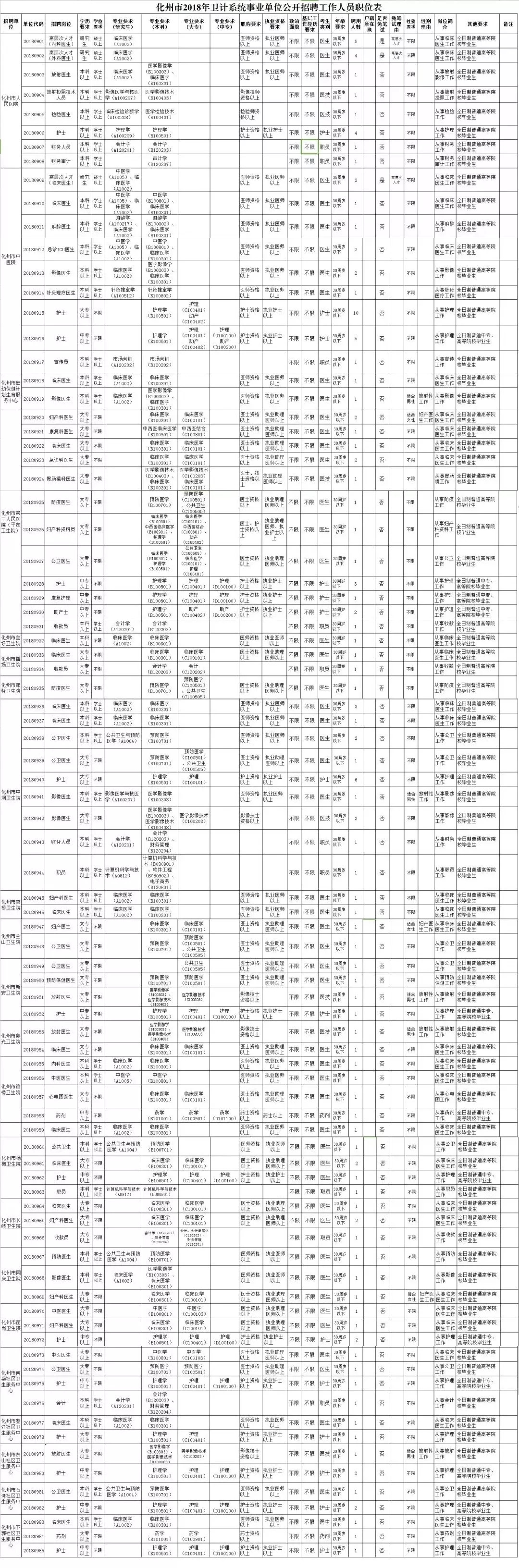 根据《广东省事业单位公开招聘人员办法》(广东省人民政府第139号令)和《化州市引进高层次人才和急需人才实施意见》(化办发〔2018〕9号)的规定,化州市卫计系统事业单位公开招聘高层次人才9名及事业单位工作人员121名。