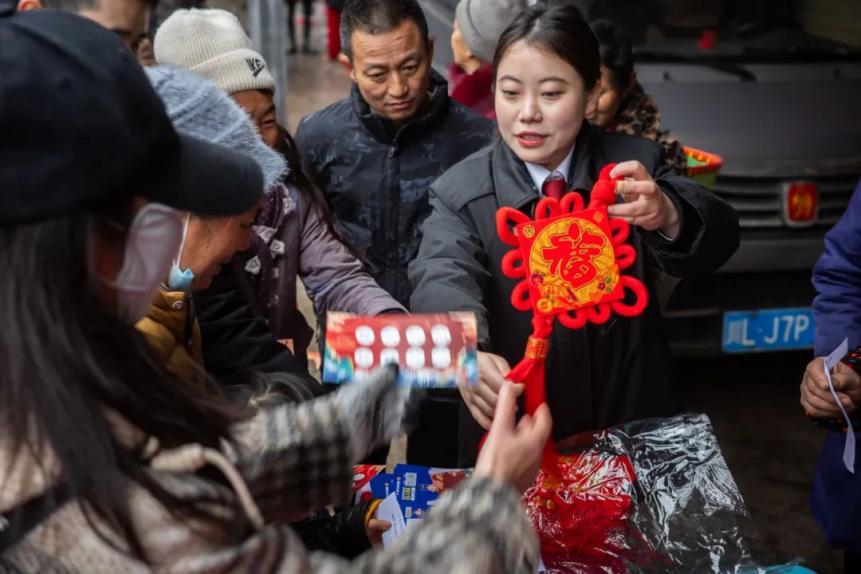 在普法的过程中,干警们为群众带去快板说唱民法典,欢快的节奏与人声鼎沸的喧嚣完美融合,成为最美新春交响乐。同时,还现场组织开展法律常识有奖问答,将法律知识融入活动,村民们既学习了法律知识,也拿到了实用小礼品,现场“法治”氛围感拉满。