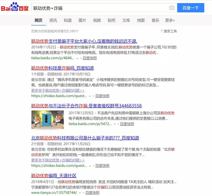 2018年8月6日,央行开出天价罚单,国付宝、联动优势因为非法交易提供支付服务等,分别被罚约4646万元、2640万元。“国付宝公司、联动优势公司均引起大量举报投诉,社会影响恶劣”是央行给出的处罚理由。笔者通过百度对关键词“联动优势+诈骗”搜索也发现,早在2010年起,互联网上就有大量诈骗案件受害人针对“联动优势”的投诉。