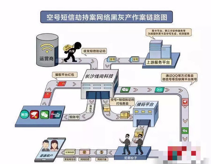 据报道,线尚科技公司利诱湖南电信营运商某员工,让其在服务器中开设端口,并提供端口IP、账号、密码,使线尚科技编写的程序可以直接连接并控制湖南电信的服务器,随后通过自动化软件,在手机上批量完成微信等互联网账号注册。同时,线尚科技将“空手机号+验证码短信”上传至接码平台,销售给数10个卡商团伙,以供他们注册微信等互联网账号,实施网络诈骗等违法犯罪行为。警方发现犯罪分子先后在微信等多个平台上注册上百万个虚假账号,并用软件伪造身份证照片3万余张、注册银行账号1万多个。