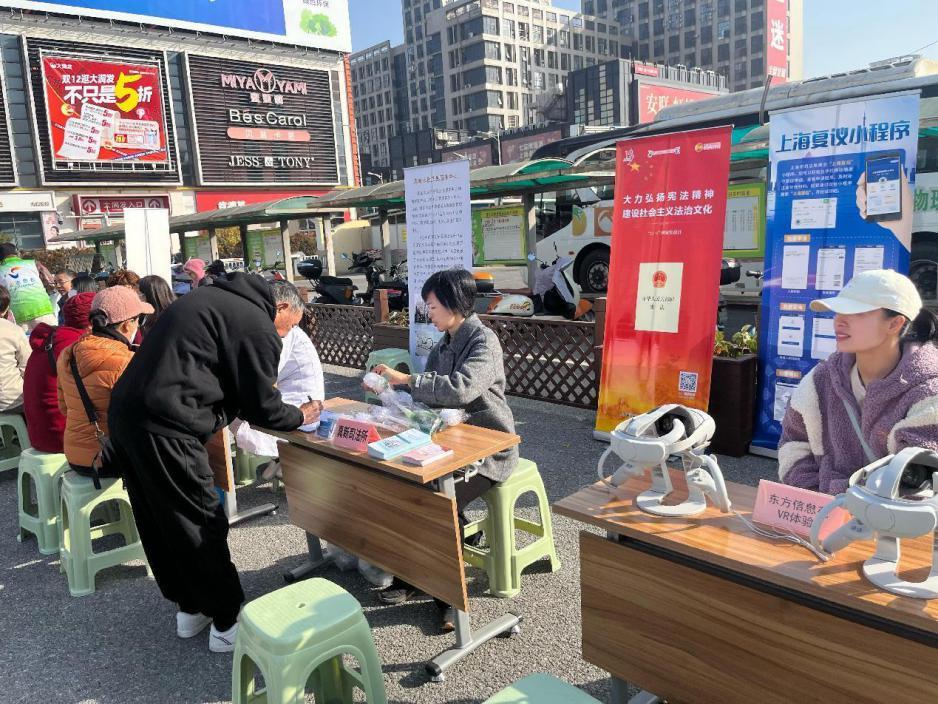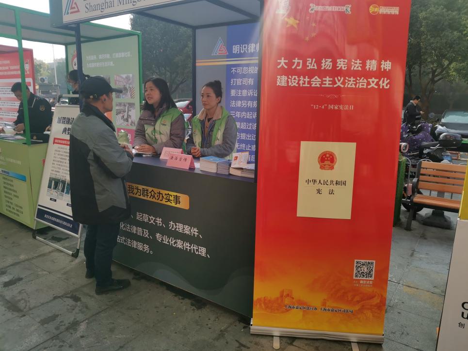 嘉定工业区法宣办联合平安办、禁毒办、人口办等职能部门在嘉定工业区朱桥邻里中心开展宪法宣传周宣传活动。工作人员向过往居民宣传了宪法、民法典、行政复议法、反电信诈骗法、禁毒、国家安全等相关法律知识,推广嘉定法宝微信公众号,告知群众通过扫码关注嘉定法宝微信公众号可以了解最新的法律知识。同时,工作人员还宣传了公共法律服务工作,并为有法律咨询需求的居民进行了解答。
