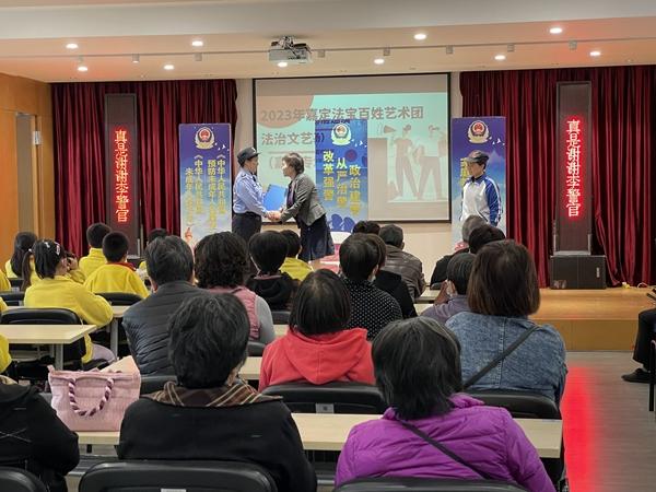 菊园新区在东部社区公共法律服务坊开展2023年嘉定法宝百姓艺术团法治文艺基层巡演活动,共吸引了80余名社区居民及青少年前来参与。活动通过群众喜闻乐见的艺术形式,先后演绎了《鸡毛飞上天·教育虎荣》《脚踏实地走正道》等传统沪剧选段。同时,法治原创沪剧小戏《守法知法伴成长》,将未成年人家庭教育等法律知识融入沪剧,演绎过程中还邀请青少年上台共同参与,在寓教于乐中提升了青少年的爱国意识和法治素养。