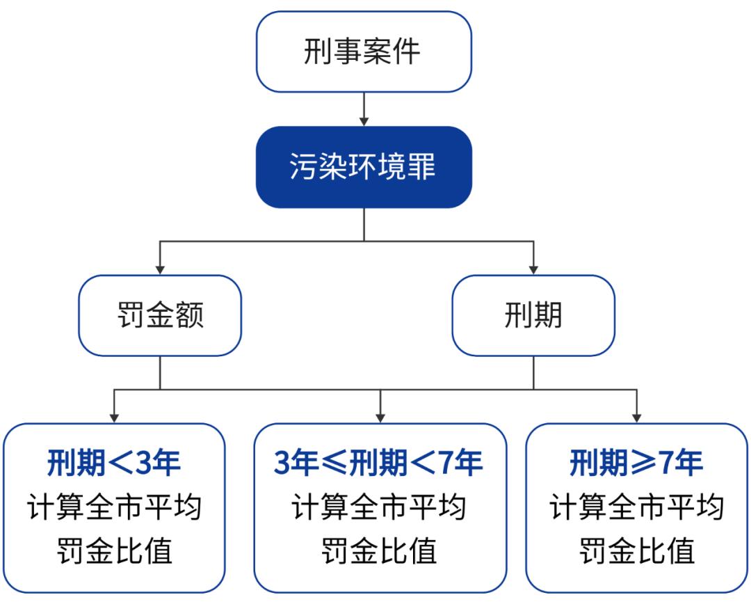 因此,“污染环境刑事案件罚金刑适法统一”应用场景模型依托近年来上海法院审判办案系统案件的结构化数据,通过对已结案件信息中三种情形下的“判决刑期”与“罚金刑数额”进行碰撞、比对,计算出平均罚金比值,作为污染环境刑事案件罚金刑适用的参考数据,提供给相关办案法官。