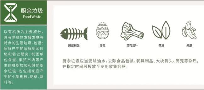 厨余垃圾:是指以有机质为主要成分,具有易腐烂发酵发臭等特点的生活垃圾。分类投放后,将交由专业的处置单位“堆肥”、发电、提取生产可用物质或无害化处理,绝大多数食物都是厨余垃圾。只要记住以下这些不是厨余垃圾就能准确分类:竹制品、大骨头、硬贝壳、椰子壳、榴莲壳、核桃壳、甘蔗皮、玉米衣、粽叶、硬果核等。