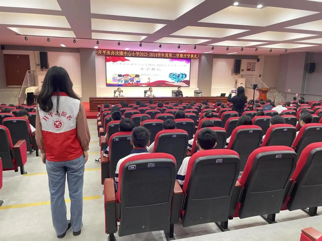 2月20日下午,开平市赤坎镇中心小学邀请赤坎司法所工作人员在学校礼堂开展法治安全课教育活动,参加学生300多人,派发宣传资料400余份。