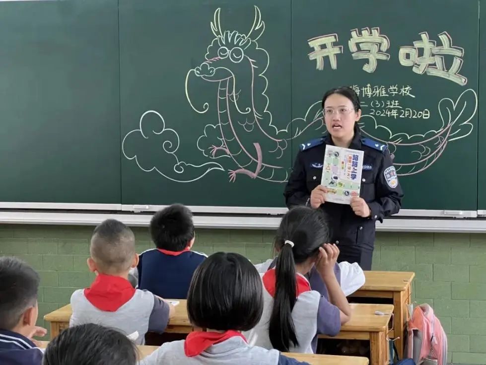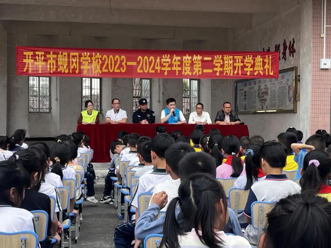 江海博雅学校举行2024年春季学期开学典礼暨“法治第一课”,特别邀请了江海区交警大队的李教导员、陈警官和徐警官为全体师生带来了一场生动的交通安全宣讲活动。