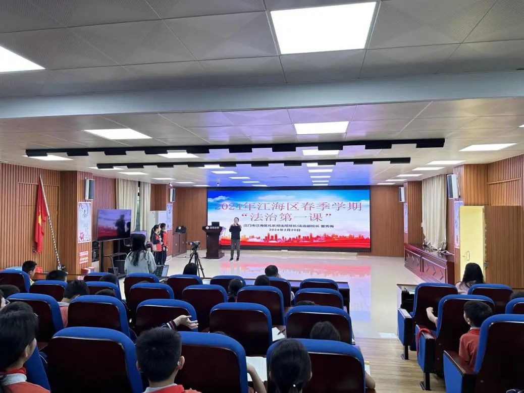 江海区景贤小学开展春季学期“法治教育第一课”活动。