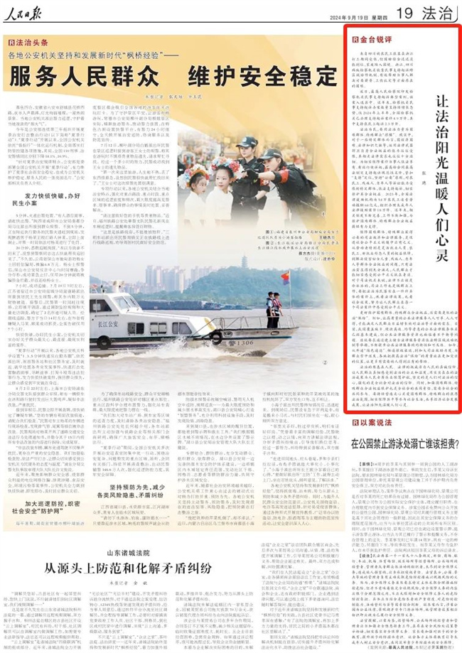 法治的根基在人民。法律的权威源自人民的真诚信仰,让人民群众真切感受到法治的公正和温度,用实实在在的法治成果为人民安居乐业保驾护航,坚定的是人们对法治的信心,强化的是全社会对法治的信仰。同时,加强困难群体、特殊群众合法权益保护也是全社会的共同责任,需要全社会的共同参与。要持续营造关心关爱困难群体、特殊群众的浓厚法治氛围,切实保障其平等参与社会生活,共享经济社会发展成果,让法治阳光温暖人们心灵。