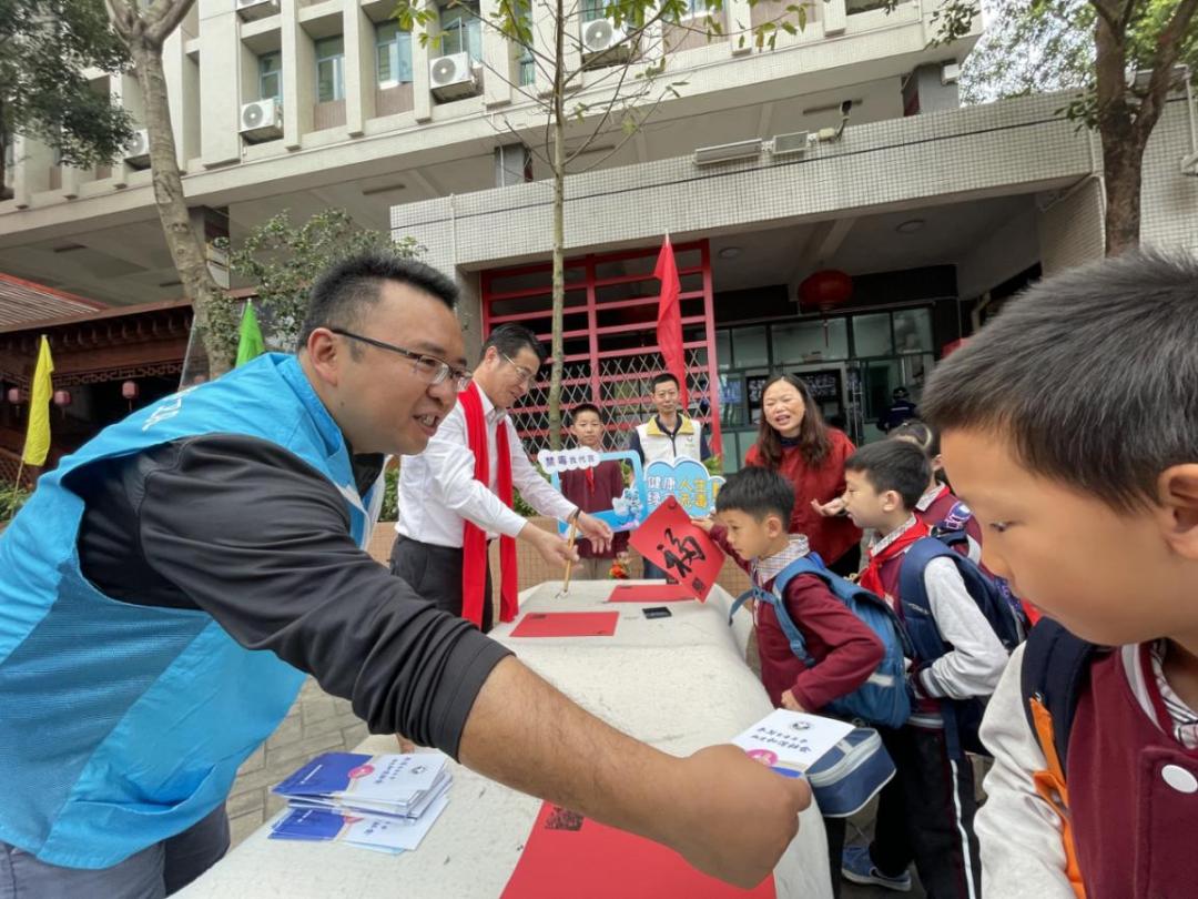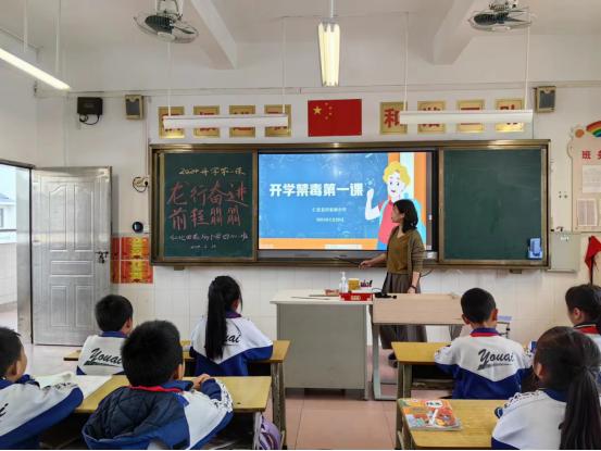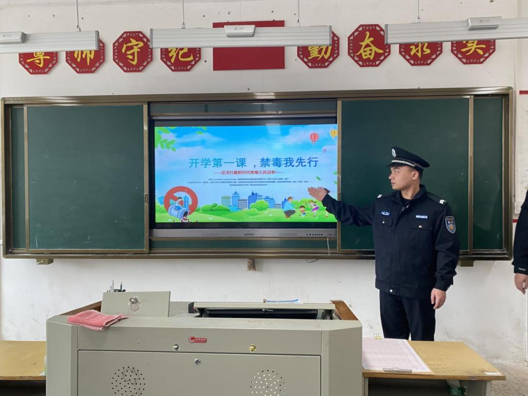 首先,严校长为学生们送上新春祝福。然后,南溪派出所民警为全体师生讲解校园安全知识,凤山街道禁毒社工讲解禁毒知识。在学习禁毒知识中,大家了解到我国的毒情形势,吸毒会对身体造成永久性的损害。
