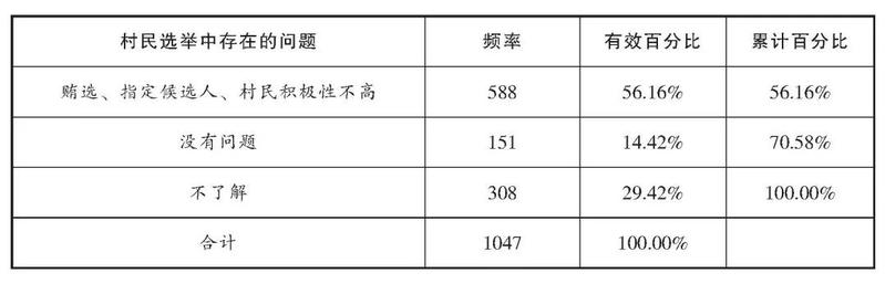 表1:村民选举中存在的问题