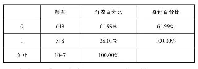 注:表中“0”表示没有选择此项, “1”表示选择了此项。