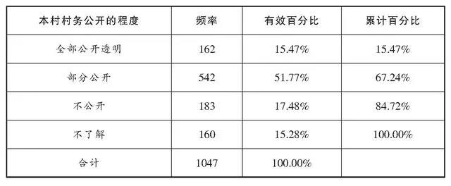 表3:本村村务公开的程度