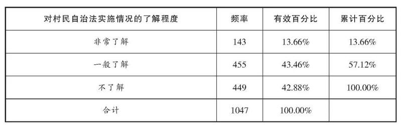 表6:对村民自治法实施情况的了解程度