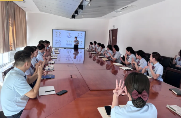 一是开展特殊群体手语知识培训。围绕来办事的残障人士遇到的服务困难点,组织大厅服务人员开展手语知识培训、服务素质提升培训,从手语基础知识、政务服务类词汇和常见问答等方面进行现场模拟演示,并通过建立常态化手语培训机制持续提升服务人员无障碍服务能力,让特殊群众办事更便捷。