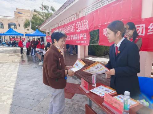 在活动现场,干警通过派发宣传彩页,耐心而细致地阐述了民法典的部分内容。同时针对彩礼的返还、如何认定夫妻共同债务、如何索要欠付的工资报酬等居民们关心的法律问题,结合多个典型案例,生动地向大家进行了讲解,为在场居民提供“零距离”法律服务。