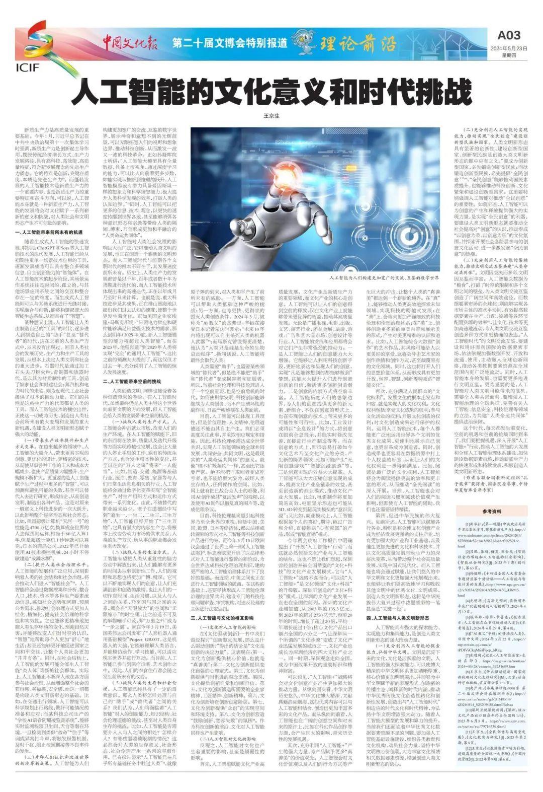 新质生产力是高质量发展的重要基础。今年1月,习近平总书记在中共中央政治局第十一次集体学习时强调,新质生产力是创新起主导作用,摆脱传统经济增长方式、生产力发展路径,具有高科技、高效能、高质量特征,符合新发展理念的先进生产力质态。它的特点是创新,关键在质优,本质是先进生产力[1]。而蓬勃发展的人工智能技术是新质生产力的一个重要内容,也是新质生产力的重要特征和奋斗方向,可以说,人工智能本身就是一种新质生产力,人工智能的发展将会对文化赋予一系列崭新的意义和挑战,对人类社会和文明形态产生不可估量的影响。