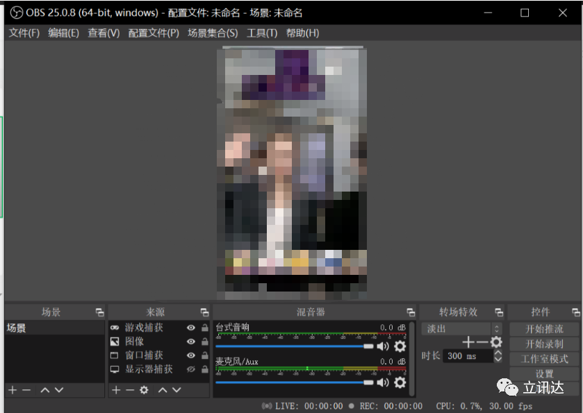 此时可以看到OBS主界面画面已经切换为竖屏模式了,再向画面里添加直播摄像头(视频捕获设备)即可。