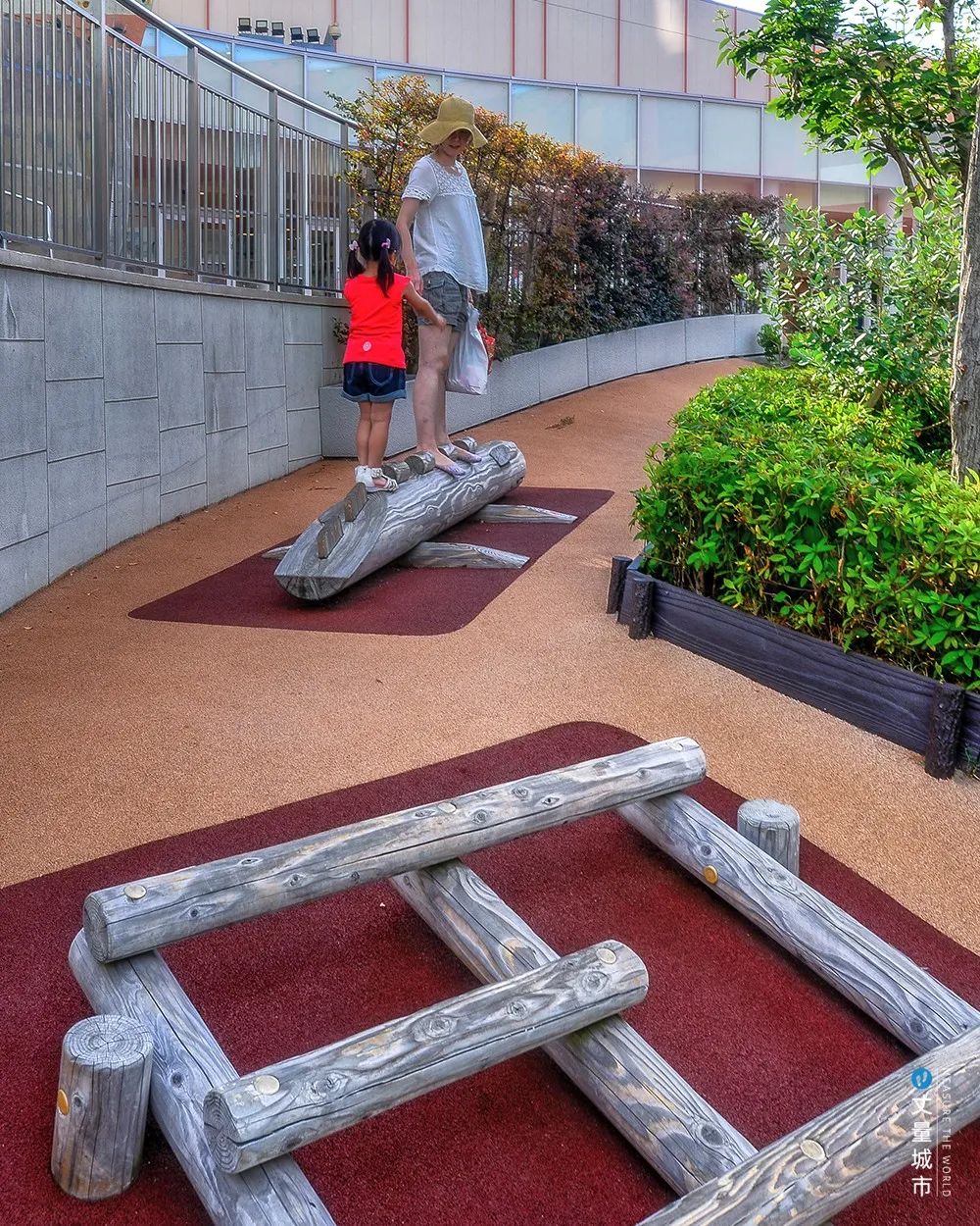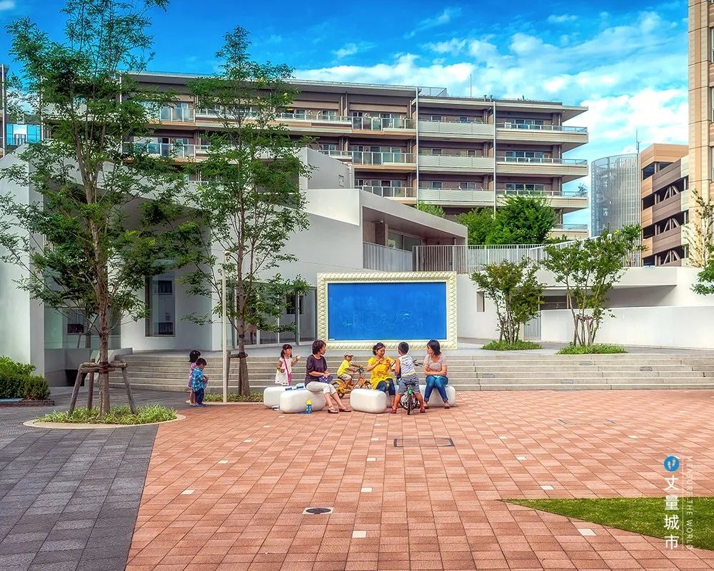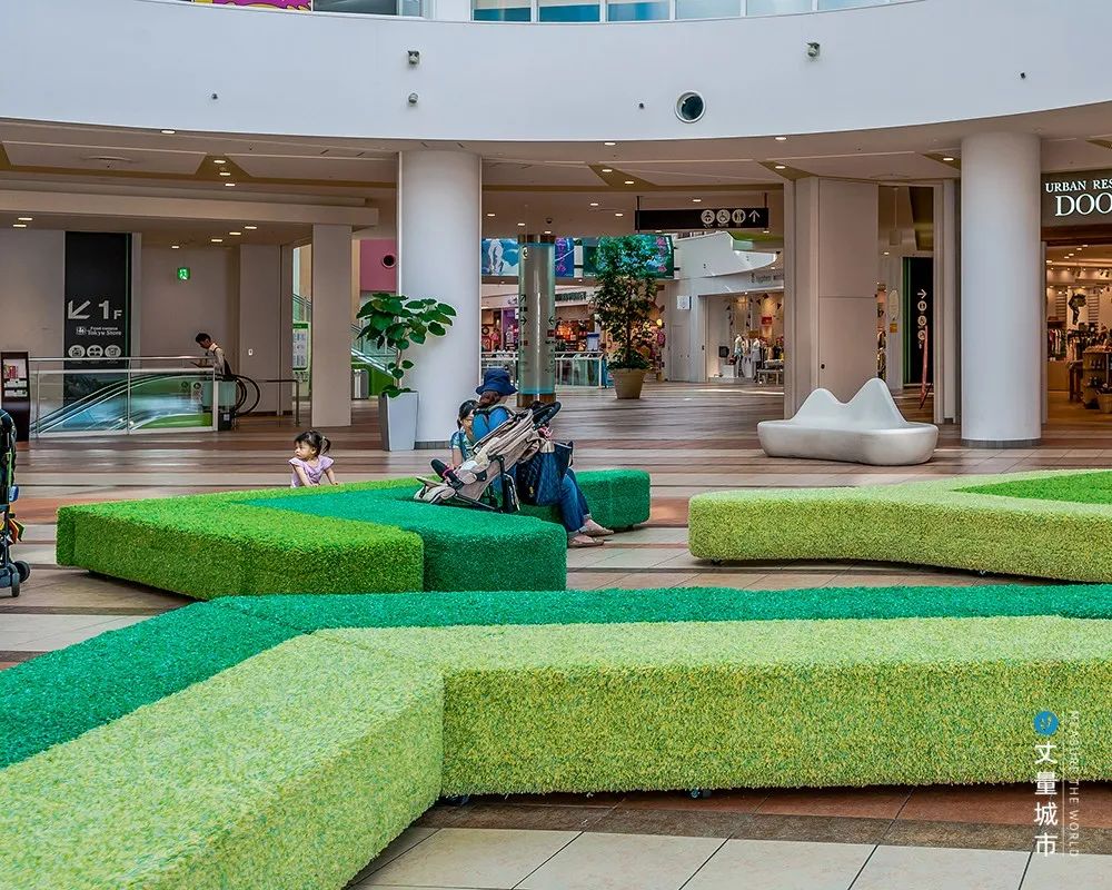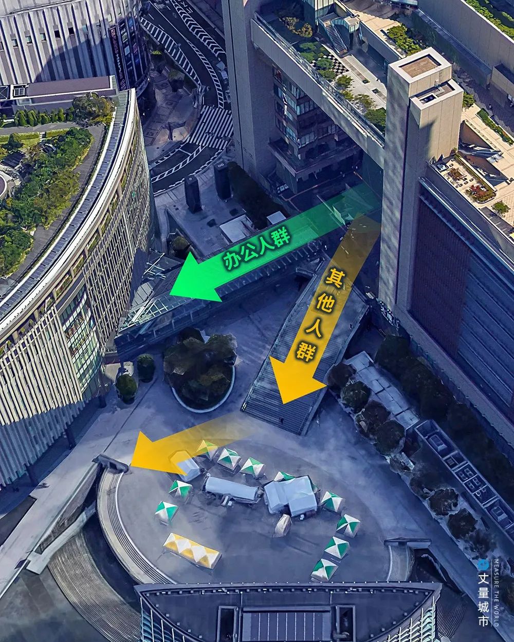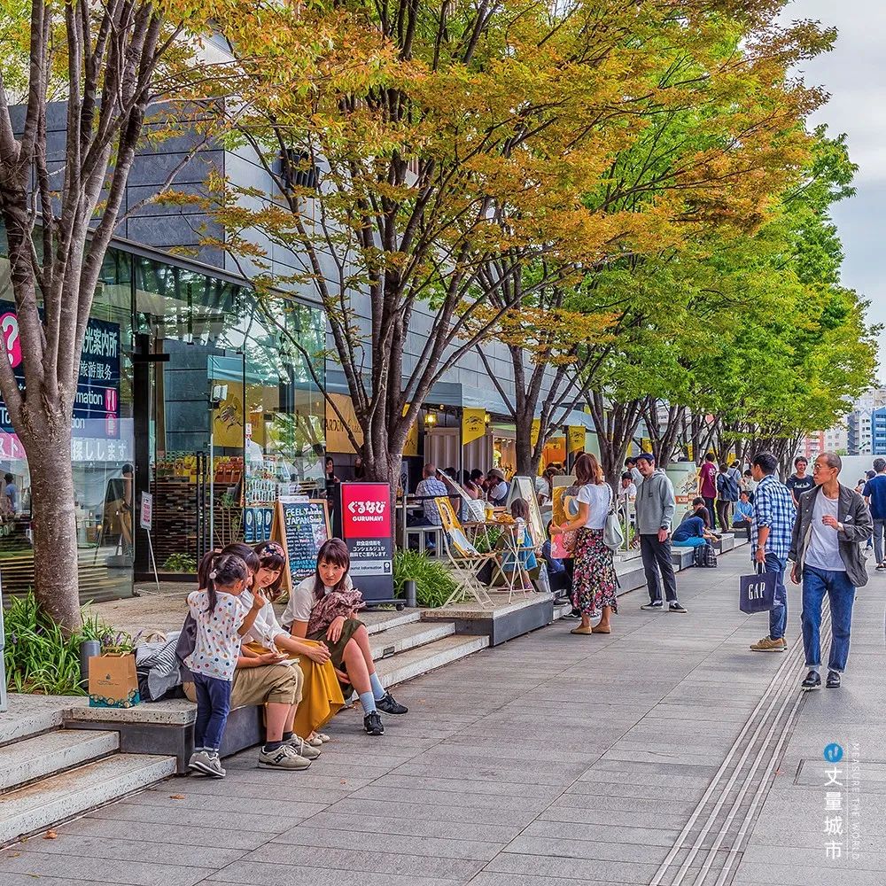 ▼ 广场周围的榉树街道与休憩空间结合,把人留在树阵下带入店铺中