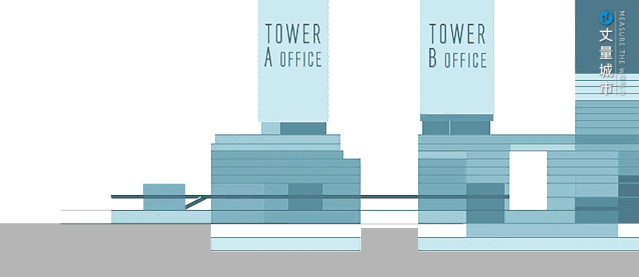 ▼ TOD一期包含4栋塔楼(办公、住宅)和8层商业裙房