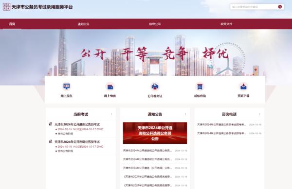 报考人员可于2024年10月16日起,登录天津市公务员考试录用服务平台(网址:https://gklx.hrss.tj.gov.cn,以下简称服务平台),查询职位及资格条件等情况。