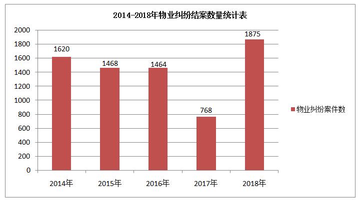 2014年至2018年,我院审结涉物业纠纷案件共计7,195件,五年间的结案数量依次为1,620件、1,468件、1,464件、768件、1,875件,纠纷呈现大幅下降后又集中再次爆发趋势,2018年结案数比2017年增加144%、比2016年增加28%(见图1)。
