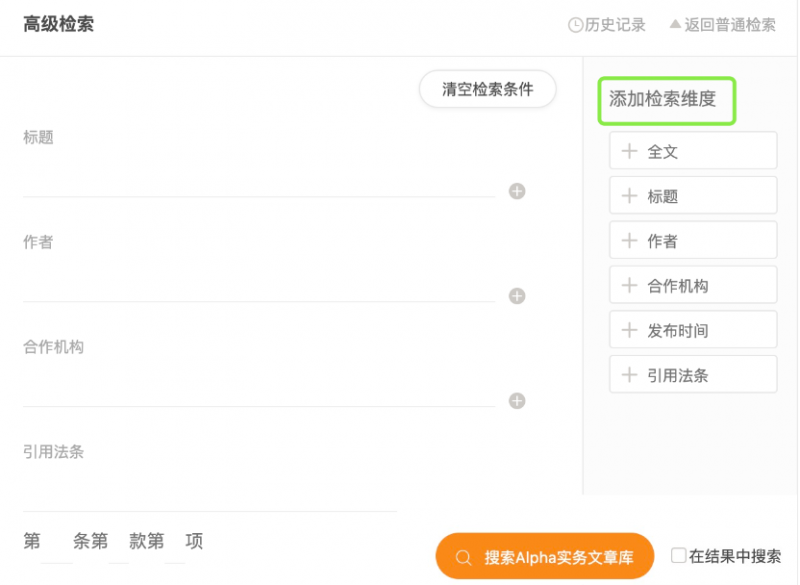 高级检索功能:数据库支持六维度查找,包括标题、全文、作者、机构、时间及引用法条。这一功能极大地提升了检索效率,让用户能够迅速定位到所需内容。