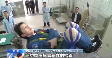 “无论男女航天员都必须通过胸背向八个G的选拔和训练,八个G就相当于自身八倍体重压在胸口。每年做两次,上半年做一次,下半年做一次,从入选接受训练开始一直到退役,必须保持训练不能中断。只要他还是个职业的航天员,他就有责任和使命随时准备去接受任务。”黄伟芬说。