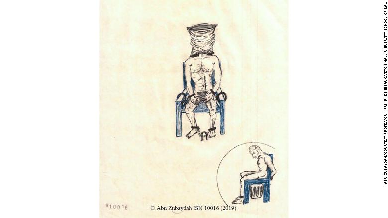 报告中包括了祖贝达手绘的插图,“生动详细地”展现了他2002年在CIA海外“黑牢”中被施加的各种酷刑。