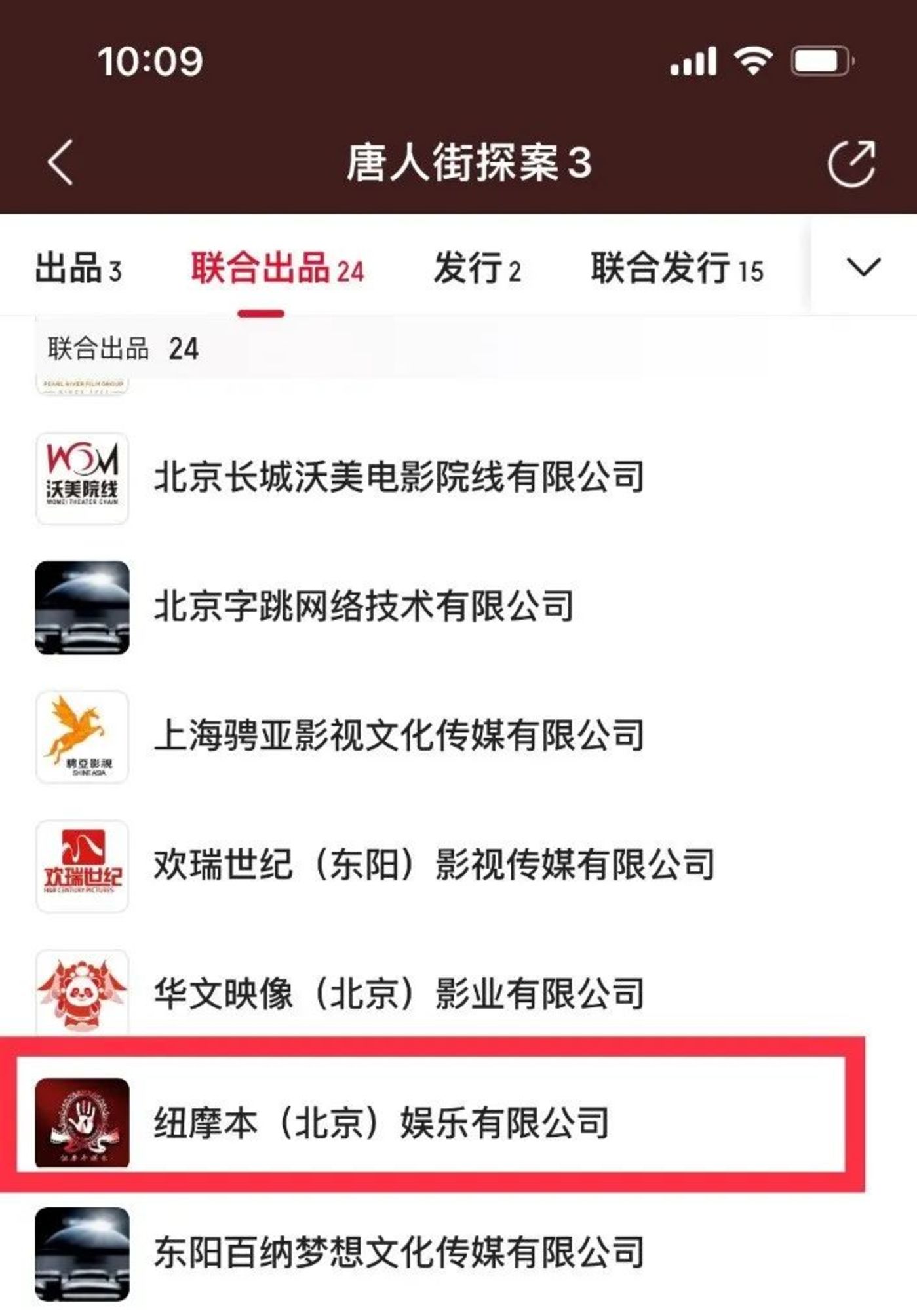 《唐人街探案3》出品方。来源:猫眼电影专业版截图