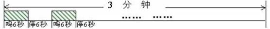 鸣响6秒,停6秒,反复15遍为一个周期,时间3分钟。无法进入地下防空避难所,人防工程、防空洞,市民利用地形地物就近隐蔽,趴在地上双手抱头。
