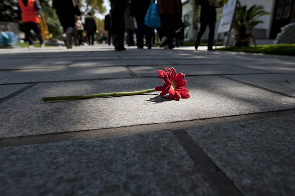上海一处墓园中,鲜花遗落在地上。孙湛 澎湃资料