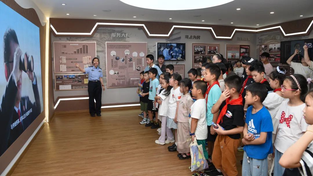 随着讲解的逐渐深入,孩子们了解了人民司法的传承和发展历程,法治的种子在心中悄然萌芽。