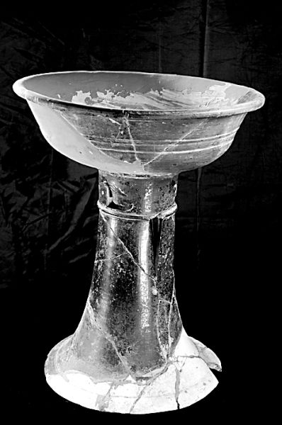 在二里头遗址发现的陶豆。新华社发
