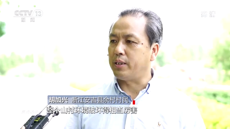 浙江安吉县余村村民 胡加兴:环境是相当差,因为又是矿山,又是水泥厂,又是化工厂,又是服装厂,整个山村环境破坏得相当厉害。