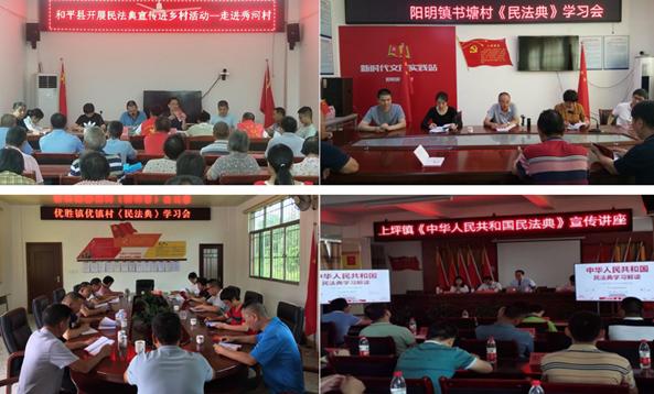 △河源市司法局全面发动各方面普法力量,成立民法典普法讲师团、民法典普法志愿者服务队,开展“一团一队民法典学习宣传进百镇千村万家”活动,面向全市101个乡镇、1435个村(社区)全面开展民法典学习宣传。