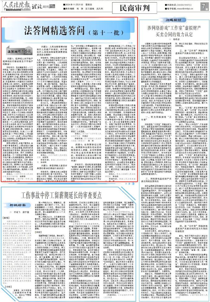 法答网上线运行以来,咨询答疑质量和平台功能得到进一步优化,上下级法院业务交流顺畅高效,困扰审判一线痛点难点问题得到及时解决,“有问题,找法答”的理念已深入基层一线,深入干警内心。为进一步满足人民群众的多元司法需求,抓实“公正与效率”,最高人民法院充分挖掘法答网资源“富矿”,积极开展优秀咨询答疑评选工作,将具有典型性、前沿性或疑难复杂的法律适用咨询答疑通过人民法院报等媒体平台陆续发布,在更广范围更深层次发挥法答网释疑解惑交流、促进统一法律适用的功能效用,向社会传递崇法风尚,弘扬法治正能量。为此,人民法院报特开设“法答网精选答问”栏目,发布法答网精选咨询答疑。敬请关注。