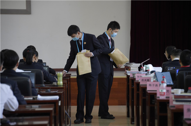 9月22日上午,认罪认罚案件实务笔试正式开赛。8点20分,工作人员将考卷分发到每一位参赛检察官手中。