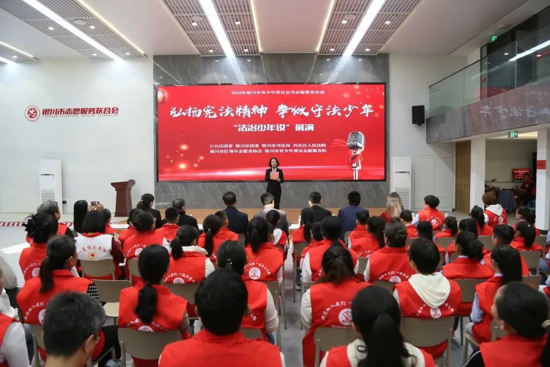 11月23日,银川市司法局、兴庆法院联合银川市红领巾志愿者协会开展“弘扬宪法精神争做守法少年”——“法治少年说”展演活动,为青少年健康成长构建全方位的法治“屏障”。