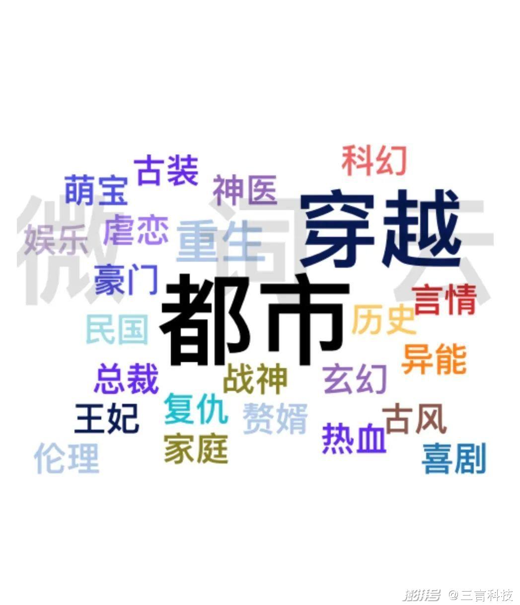除此之外,“首富”、“夫人”、“重婚”、“娇妻”、“极品”、“千金”、“绝世”等词汇出现频率也较高,接近10次。