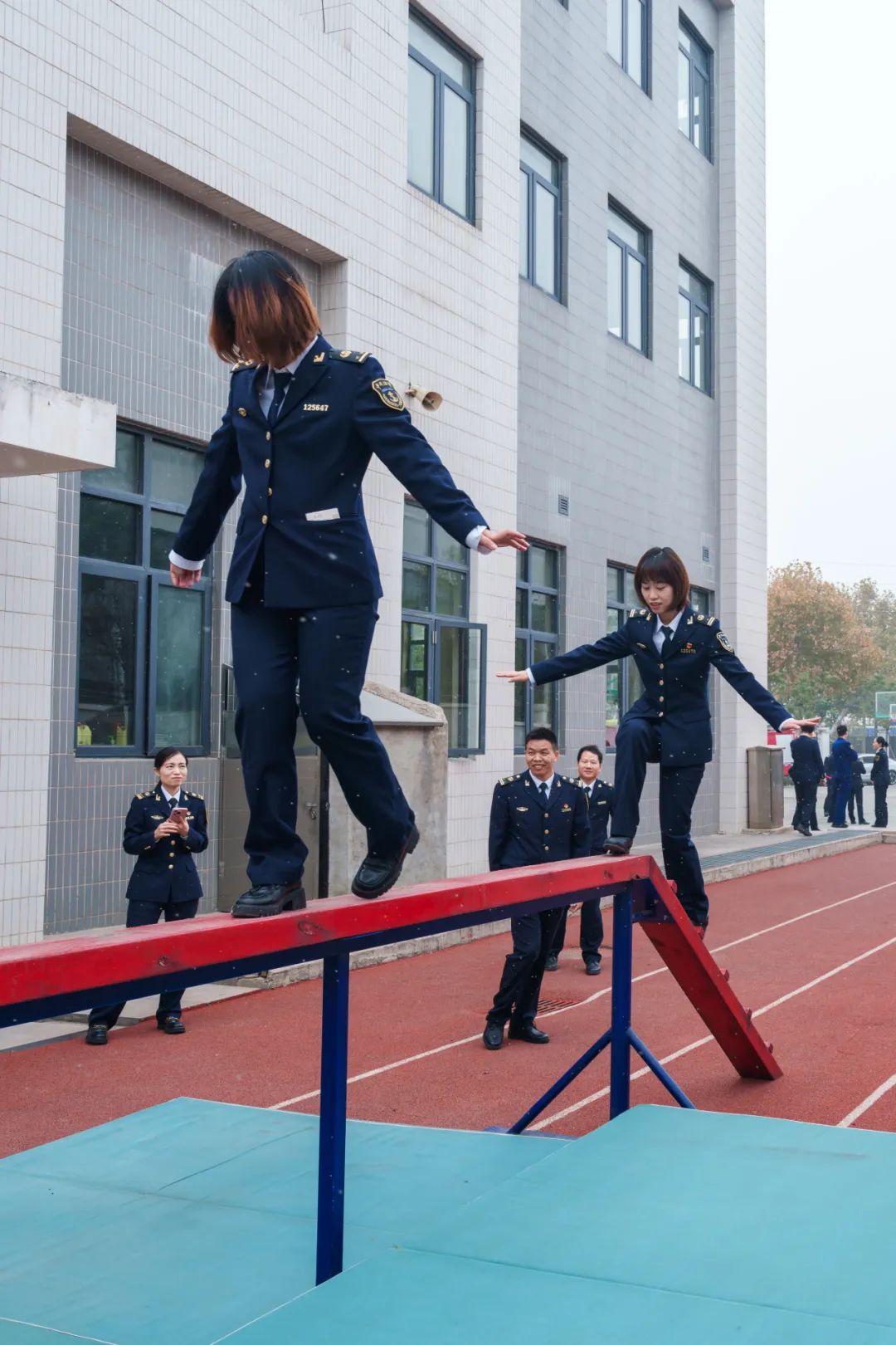 后操场上藏着数不尽的汗水,各种技能都在这里从生疏到熟练。百米障碍救助操、两节拉梯、挂钩梯……对于消防员来说已经是“家常便饭”了。消防员们展示完,海事处的小伙伴们也好奇地体验起来,一时间欢声笑语,此起彼伏的掌声是大家最好的鼓励。活动的最后,大家集体合影,用相机保留住这份珍贵的记忆。