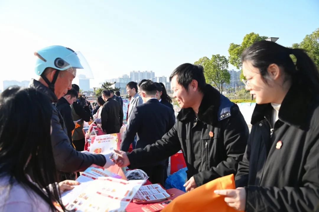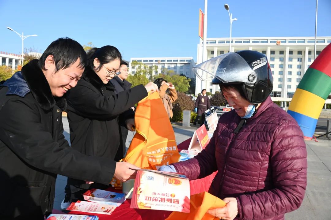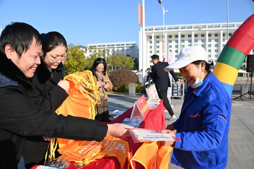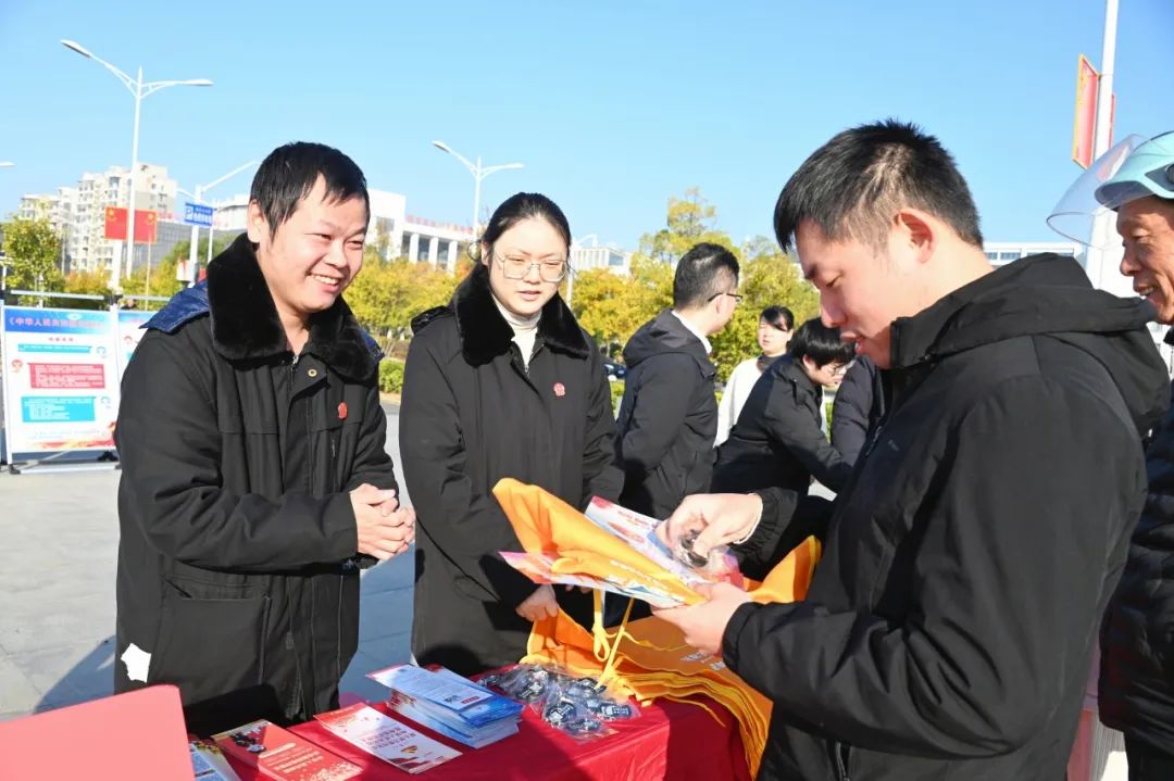 11月30日,在县龙湖公园广场,展位上整齐摆放着各类宣传资料,包括宪法宣传折页、民法典解读手册、反电信网络诈骗法指南等。法院干警们身着制服,面带微笑,热情洋溢地向过往的市民发放宣传资料,并耐心细致地解答群众的法律问题。无论是关于劳动权益的保护,还是网络购物中可能遇到的陷阱,干警们都一一给予了专业且通俗易懂的解答,让法律知识不再是冰冷的文字,而是成为维护群众权益的温暖力量。