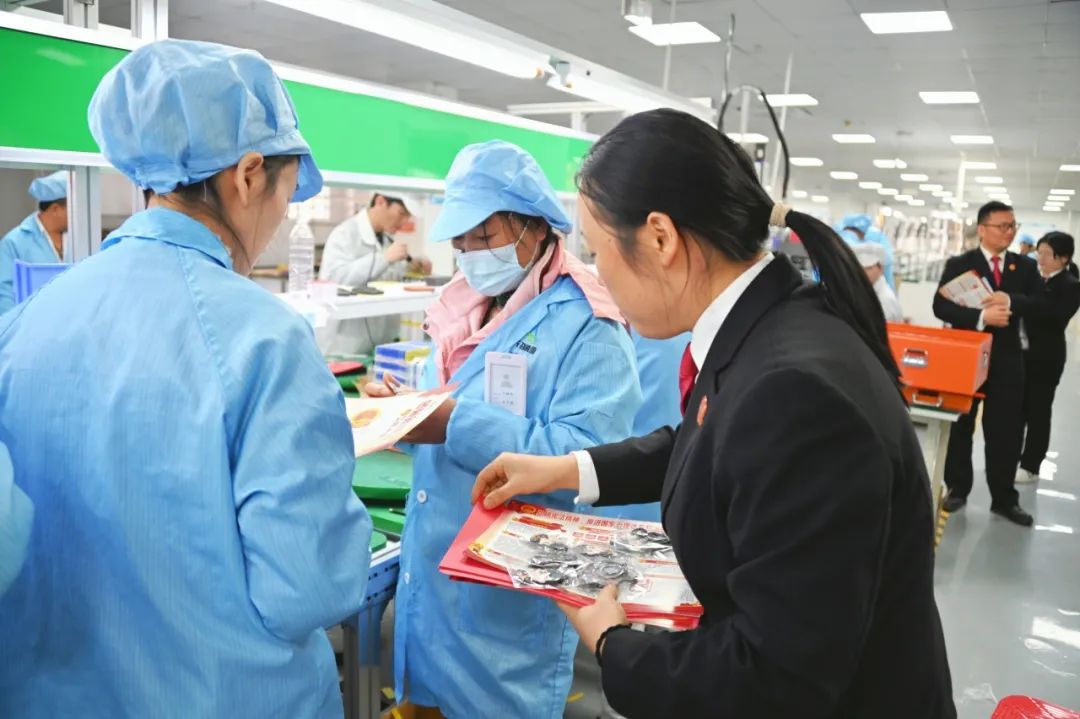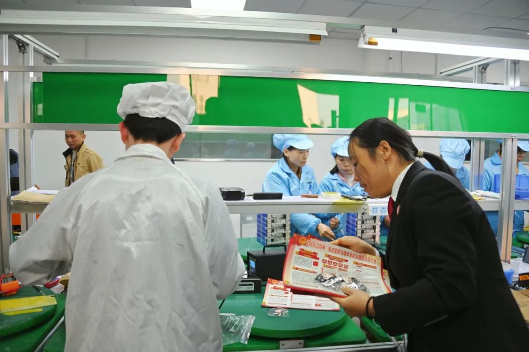 11月27日,干警们走进园区内的企业工厂,开展了一场别开生面的“送法进车间”活动。干警们深入生产一线,耐心地向工人们普及宪法、民法典、劳动合同法、反电信网络诈骗法等法律知识,通过案例分析,让复杂的法律条文变得生动具体,易于理解。还发放了宣传折页和普法小礼物,进一步提高了劳动者的法律意识,用实际行动诠释了司法为民的初心与使命。