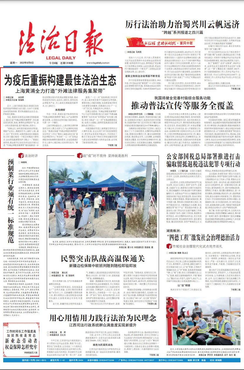 原标题:《《法治日报》头条:黄浦打造“外滩法律服务集聚带”,构建最佳法治生态》