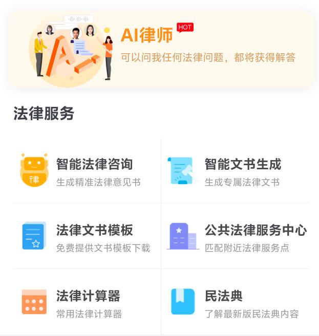 除此之外,您可以通过法律文书模版下载文书;通过公共法律服务中心查询机构地址;通过法律计算器计算赔偿金额;通过民法典版块学习最新法规内容。